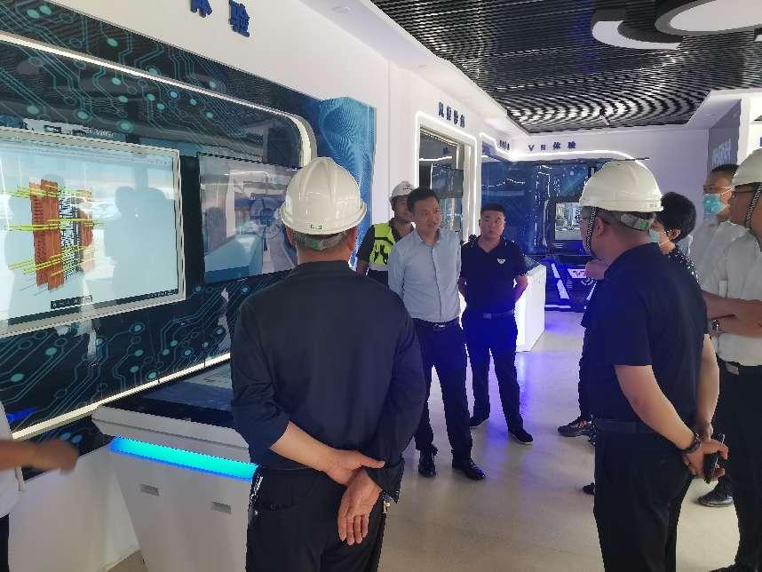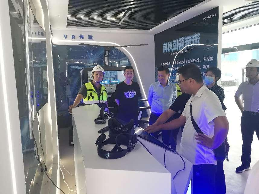 考察團一行在施工現場聽取了項目負責人對平疫結合項目的建設概況、設計理念、高穿插作業方案以及項目實際進度的介紹后,一同參觀了項目數字化管理展廳,實操VR體驗、AR體驗、風控電子沙盤等內容,對港務中路保障性租賃住房的創新模式表示肯定,對數字化管理展廳的節點性施工技術交底提出贊揚。