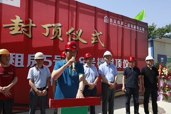 在封頂儀式上,經(jīng)營(yíng)二公司經(jīng)理董文軍對(duì)參與該項(xiàng)目的施工方、監(jiān)理方和勞務(wù)方的工作表示了衷心的感謝;林華監(jiān)理代表對(duì)5#、8#樓的施工質(zhì)量、進(jìn)度、安全等方面予以充分的肯定,并對(duì)5#、8#樓春節(jié)前搶抓進(jìn)度,創(chuàng)造月進(jìn)度5層半的成績(jī)表示贊嘆;市局領(lǐng)導(dǎo)強(qiáng)調(diào)丈八路廉租房項(xiàng)目在后期建設(shè)中,要繼續(xù)發(fā)揮5#、8#樓作風(fēng)過(guò)硬、技術(shù)過(guò)硬的優(yōu)勢(shì),在保證安全和質(zhì)量的前提下?lián)屵M(jìn)度,保質(zhì)量。房管處劉振龍?zhí)庨L(zhǎng)特別提出兩個(gè)具體要求:一是安全生產(chǎn)的重要性,要時(shí)刻保持警惕,一刻不得松懈;二是要注意治污減霾和施工噪音擾民的問(wèn)題,要注意防塵覆蓋和定時(shí)噴淋,高考中考時(shí)間停止夜間施工,為保衛(wèi)西安藍(lán)天做貢獻(xiàn),為廣大學(xué)子營(yíng)造良好學(xué)習(xí)休息環(huán)境。