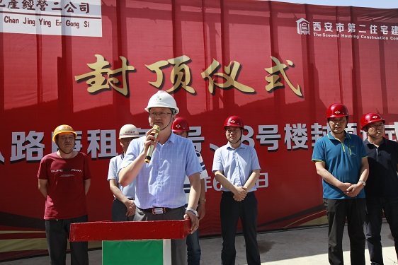 6月6日,迎來(lái)今年入夏以來(lái)最炎熱的一天。丈八路廉租房項(xiàng)目就在這火紅的六月紅紅火火的順利封頂了。西安市房地產(chǎn)經(jīng)營(yíng)二公司和住宅二公司聯(lián)合舉辦了封頂儀式,市局保障中心和房管處的領(lǐng)導(dǎo)、林華監(jiān)理和宇翔勞務(wù)代表出席了封頂儀式。儀式由住宅二公司丈八路項(xiàng)目指揮長(zhǎng)主持。