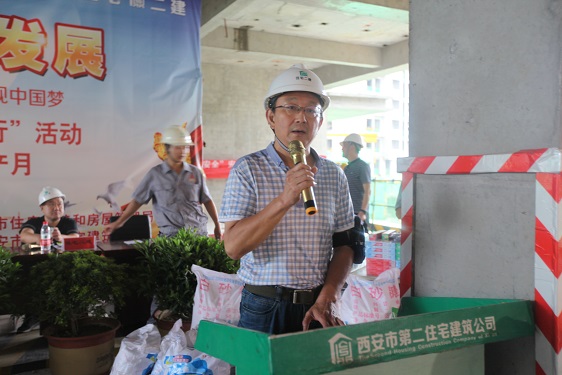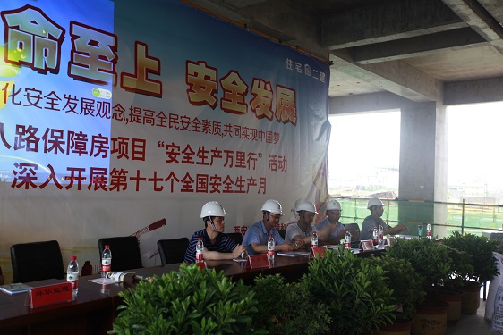 正值全國第十七個“安全生產(chǎn)月”,此次安全專項活動本著“生命至上、安全發(fā)展”的理念,為推動安全生產(chǎn)重點工作落實,推動安全理念深入人心,6月26日上午,西安市住房保障和房屋管理局在丈八路保障房建設(shè)項目一線施工現(xiàn)場開展了2018年“安全生產(chǎn)萬里行”專項安全教育活動,聚焦責(zé)任落實、科技強安、依法治安等方面的重點內(nèi)容。 西安市第二住宅建筑公司積極承辦了此項活動,參加本次活動局屬房管處、保障處和保障中心的有關(guān)負責(zé)同志,還有開發(fā)總公司、經(jīng)營一公司、經(jīng)營二公司、經(jīng)營三公司、工商業(yè)經(jīng)營公司、住宅一公司、林華監(jiān)理等單位負責(zé)安全管理的人員以及項目部各施工班組共計410余人。同時邀請中國安全健康教育中心安全應(yīng)急科專職教官作了現(xiàn)場指導(dǎo)。